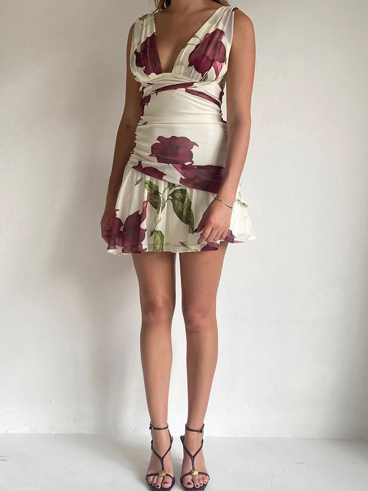 Step into summer with confidence in our stunning Backless Ruffle Print Sexy Mini Dress. This elegant fashion piece combines a playful ruffle design with a sultry backless silhouette, perfect for making a standout impression at any club or event.