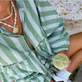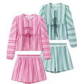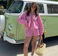 Chic Striped Lantern Sleeve Top & Shorts Set for Women