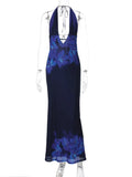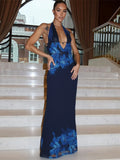Deep V Neck Print Maxi Dress for Women - Backless Clubwear