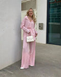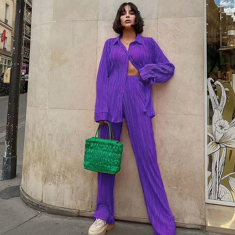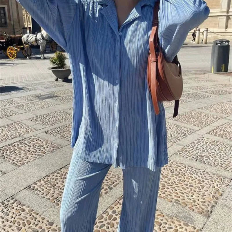 Elevate your wardrobe with our Elegant Two Piece Set for Women, designed for style and comfort. This chic outfit features a pleated shirt and high-waist trousers that are perfect for both casual outings and elegant events.
