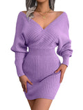 Elegant V-Neck Batwing Sleeve Sweater Dress for Women