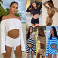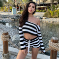 Elevate your beach style with our Knitted Stripe Crop Top and Shorts Set for Women. This stylish two-piece outfit features a long sleeve top and comfortable drawstring shorts, perfect for any summer occasion. Whether you’re lounging by the pool or enjoying a day at the beach, this set combines comfort and fashion effortlessly.