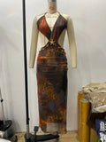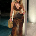 Leopard Print Deep V-Neck Maxi Dress for Women