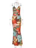 Leopard Print Sexy 2 Piece Set - Halter Crop Top & Maxi Skirt