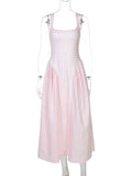 Plaid Printed Maxi Dress for Women - Summer Spaghetti Strap Gown