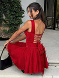 Red Backless Mini Dress for Women – Elegant Summer Style