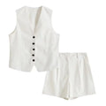 Whether you're heading to the office or a summer event, the Retro Linen V Neck Vest Blazer and Wide Leg Shorts Set is your go-to choice for a chic and sophisticated look. Embrace vintage vibes while staying contemporary and confident!