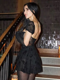 Women’s Sexy Mini Lace Dress - Backless & Pleated