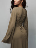 Solid Ribbed Back Lace-Up Straps Maxi Dress