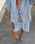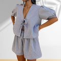 Summer Plaid Shorts Suit for Women - Casual 2 Piece Set