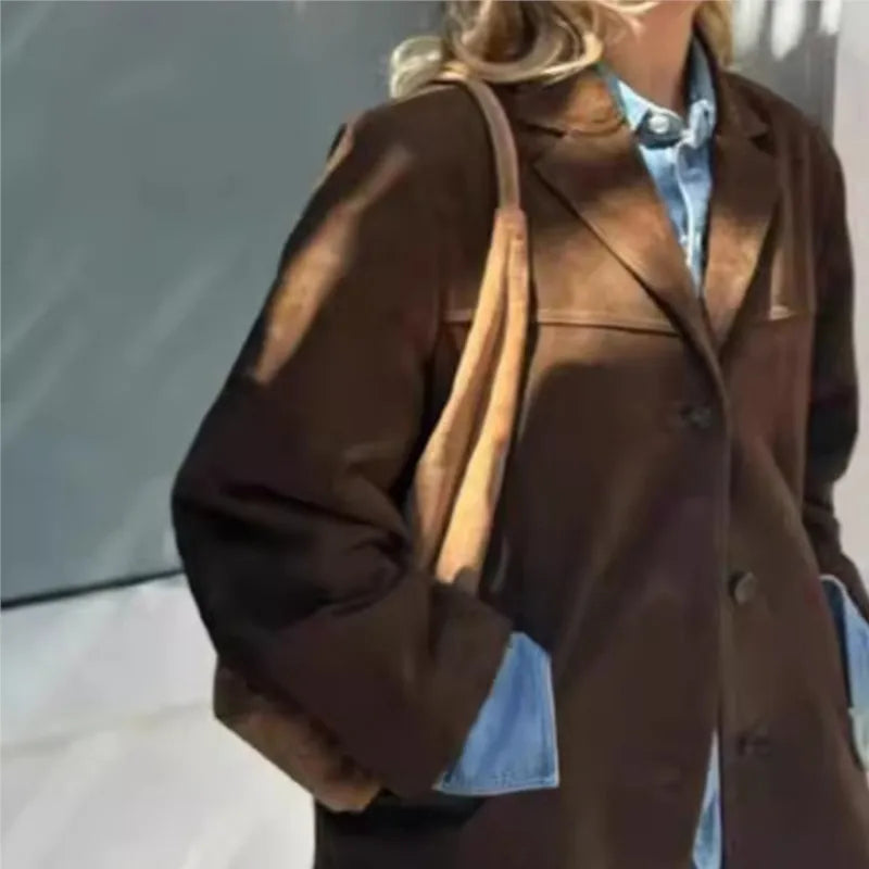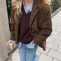 Vintage Brown Blazer Coat for Women - Stylish Long Sleeve Jacket