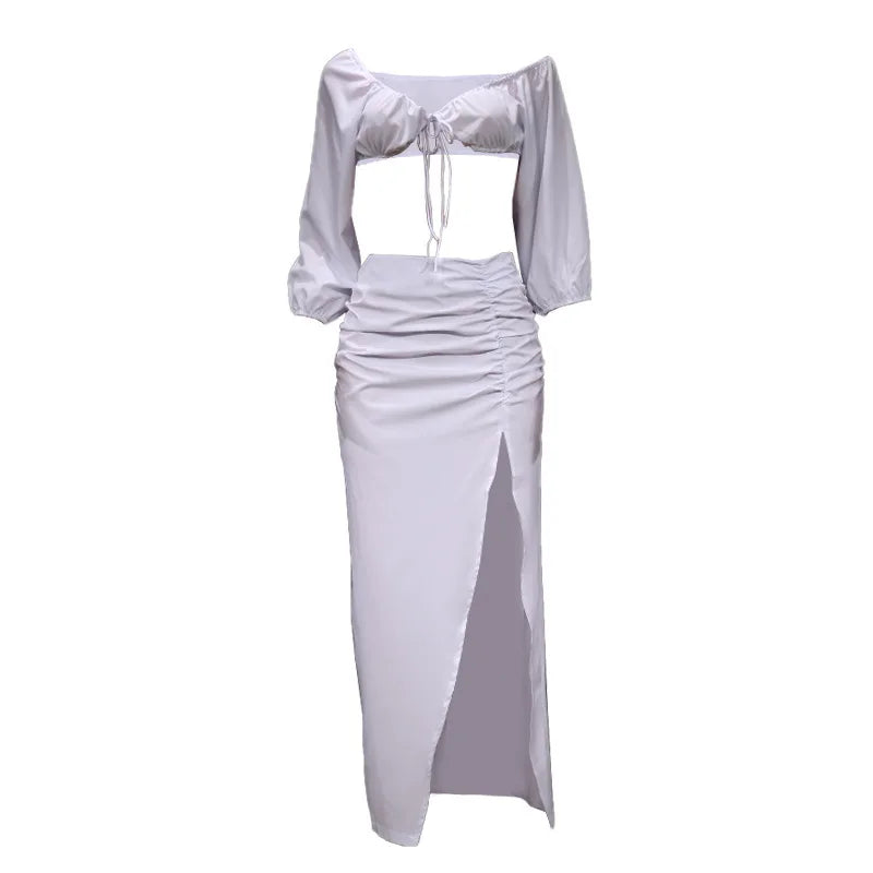 Women's Cropped Bra Top & High Slit Pleated Skirt Set