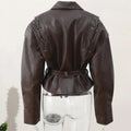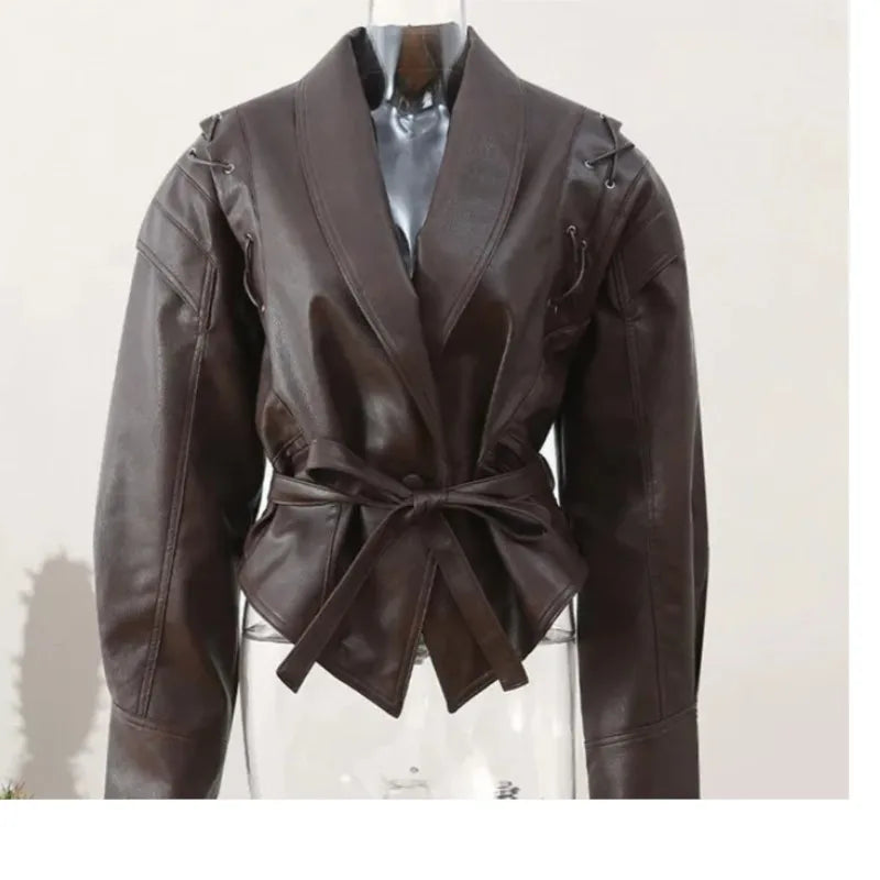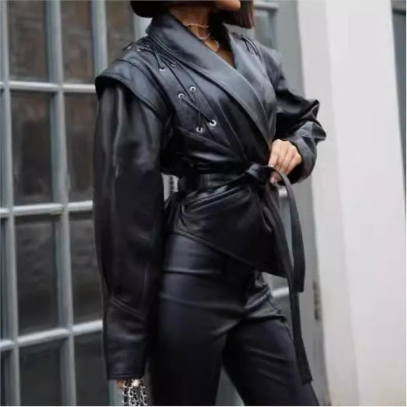 Introducing the Women's Irregular Faux Leather Jacket, a perfect blend of style and functionality designed for the autumn and winter seasons. This chic PU blazer features a unique irregular design that stands out, making it an essential addition to your streetwear collection.