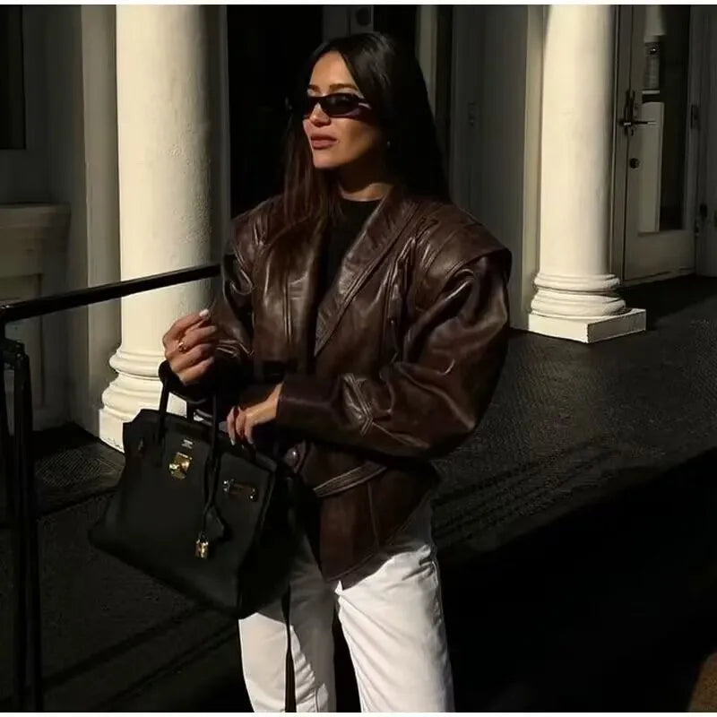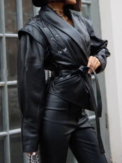 Women's Irregular Faux Leather Jacket - Stylish Autumn Winter Blazer