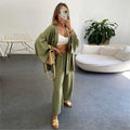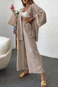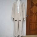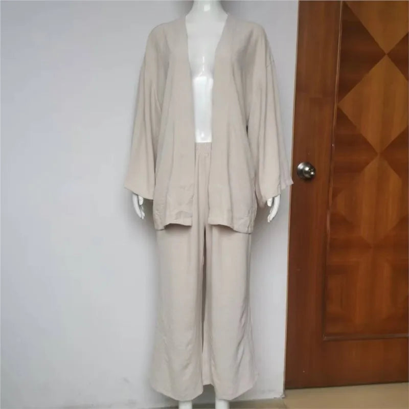 Women's Linen Trouser Suit with Bat Sleeve Cardigan - 2 Piece Set
